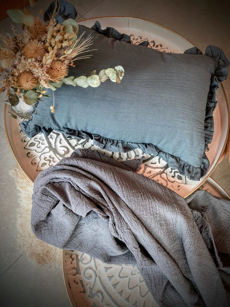 Transforma tu espacio con el sofisticado Almohadón de Tusor con Volados Chico.