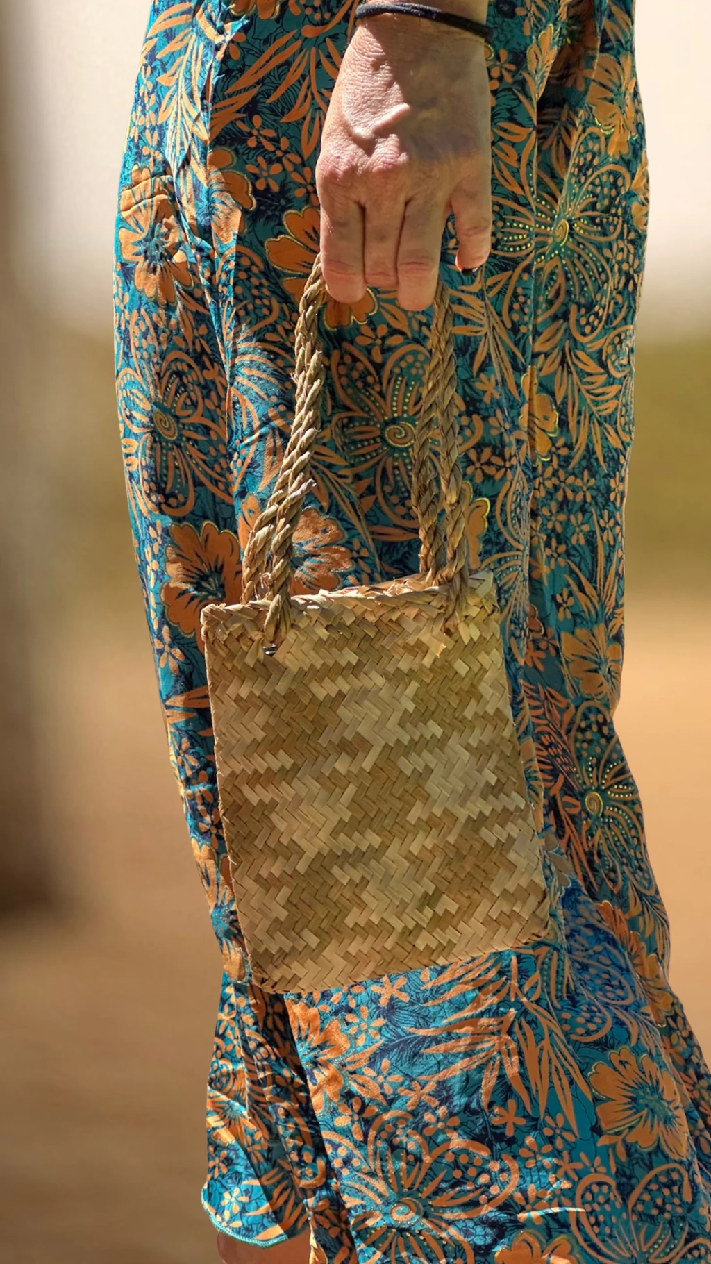 Explora el bolso de palma trenzado artesanalmente, ideal para llevar tu celular y otros esenciales con estilo. Elaborado en Vietnam, este accesorio fusiona tradición y contemporaneidad, convirtiéndolo en un imprescindible de la temporada.