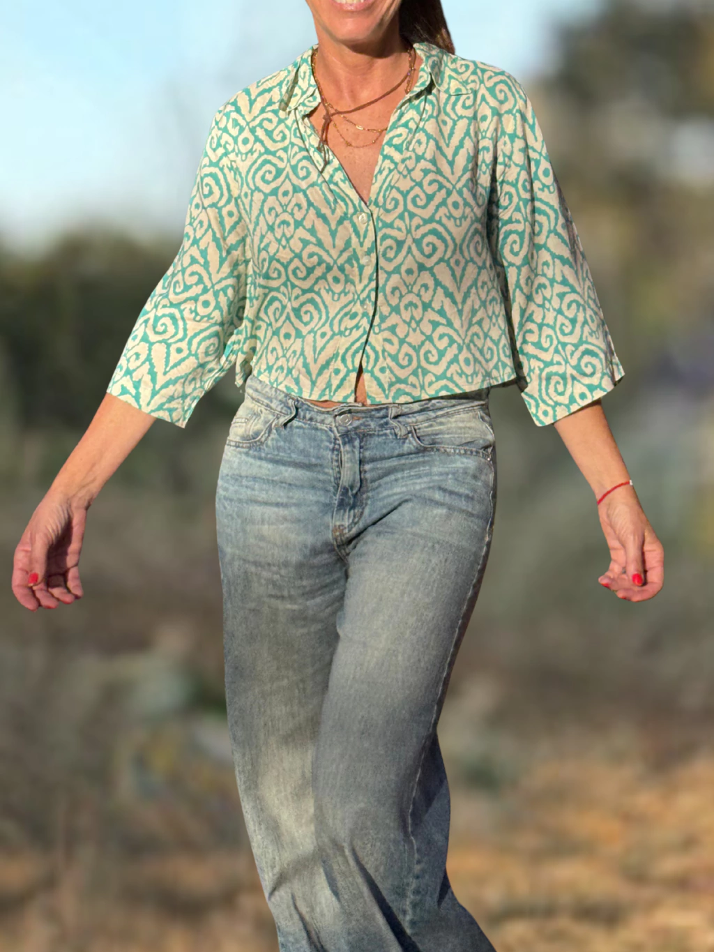 Descubrí la camisa 100% algodón de India, corta y color aqua. Su tejido suave y fresco garantiza máxima comodidad durante todo el día. Destacá tu estilo con su caída única, ideal para looks urbanos o relajados.