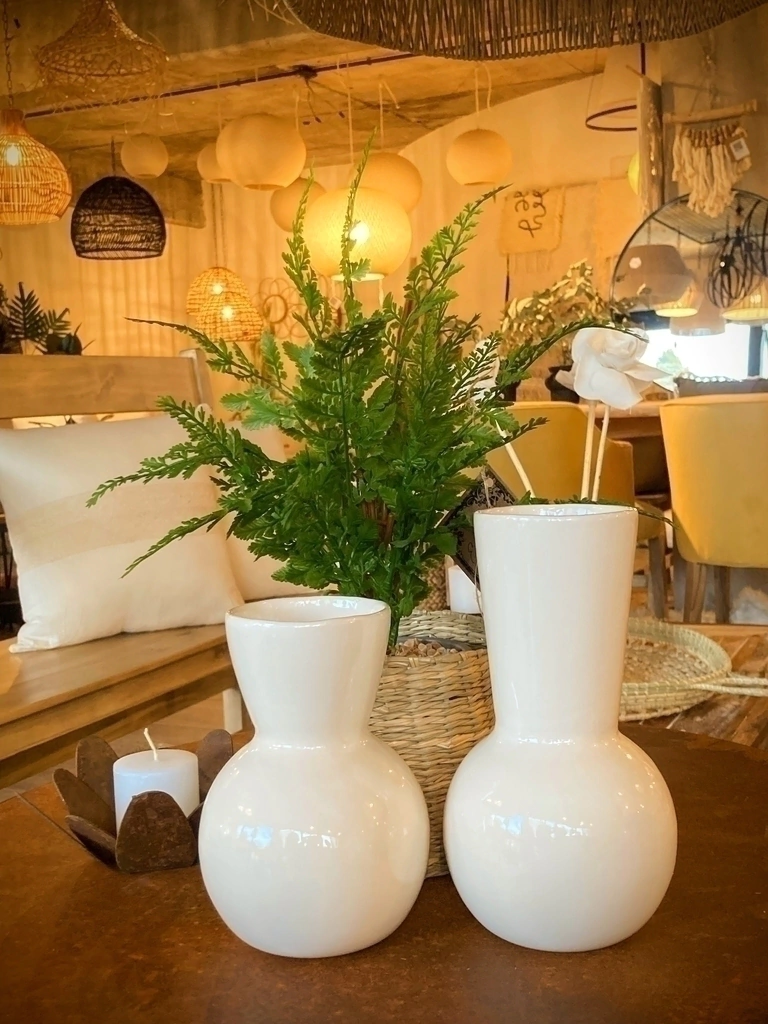 FLORERO DE CERÁMICA LOLI NATURAL: Un toque de estilo artesanal para tu hogar. Disfrutá del elegante diseño de color natural y medidas: alto 12x21cm, bajo 12x16,5cm.