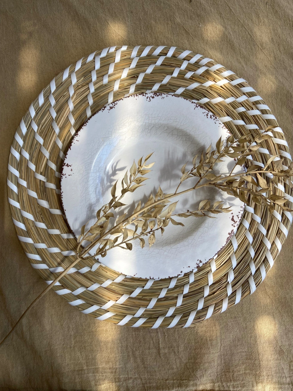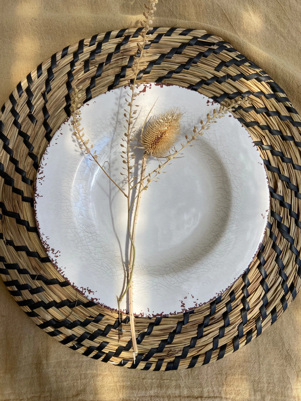 INDIVIDUAL HANOI Transformá tu mesa con el Individual Hanoi. Hecho a base de fibras naturales combinadas con elegantes tonos en negro o blanco, este versátil plato de sitio o centro de mesa es perfecto para destacar cualquier ocasión. Con un diámetro de 38 cm, ofrece un toque sofisticado y moderno a tu decoración. No pierdas la oportunidad de embellecer tu hogar con este accesorio único.
