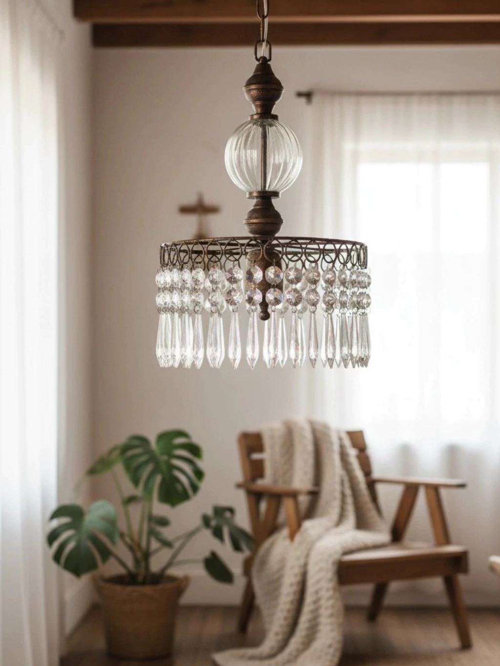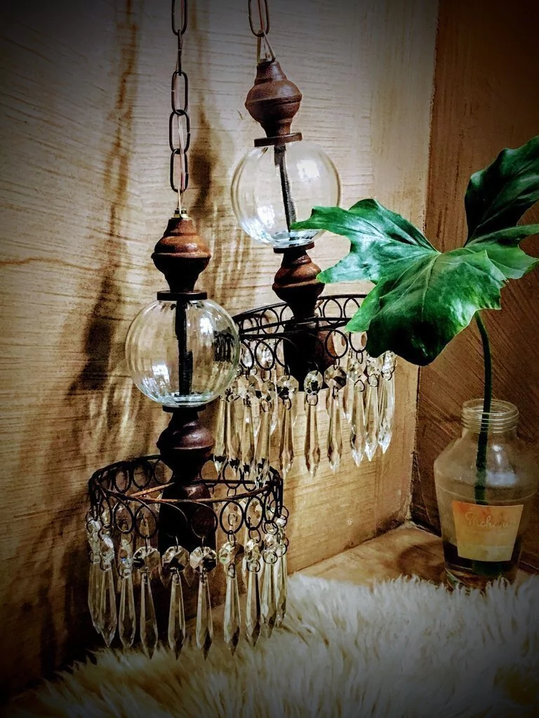 Colgante de rulos de hierro oxido con estructura de vidrio