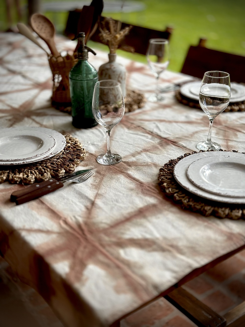Mantel Tusor Batik Transformá tu mesa con la calidez y el diseño único del mantel tusor batik. Realizado en suave tusor 100% algodón, destaca por su estampa artesanal batik que aporta personalidad a cualquier ambiente. Medida: 2,46 m x 1,42 m. Ideal para reuniones o uso diario, es fácil de lavar y resistente. ¡Dale un toque bohemio y sofisticado a tu hogar!