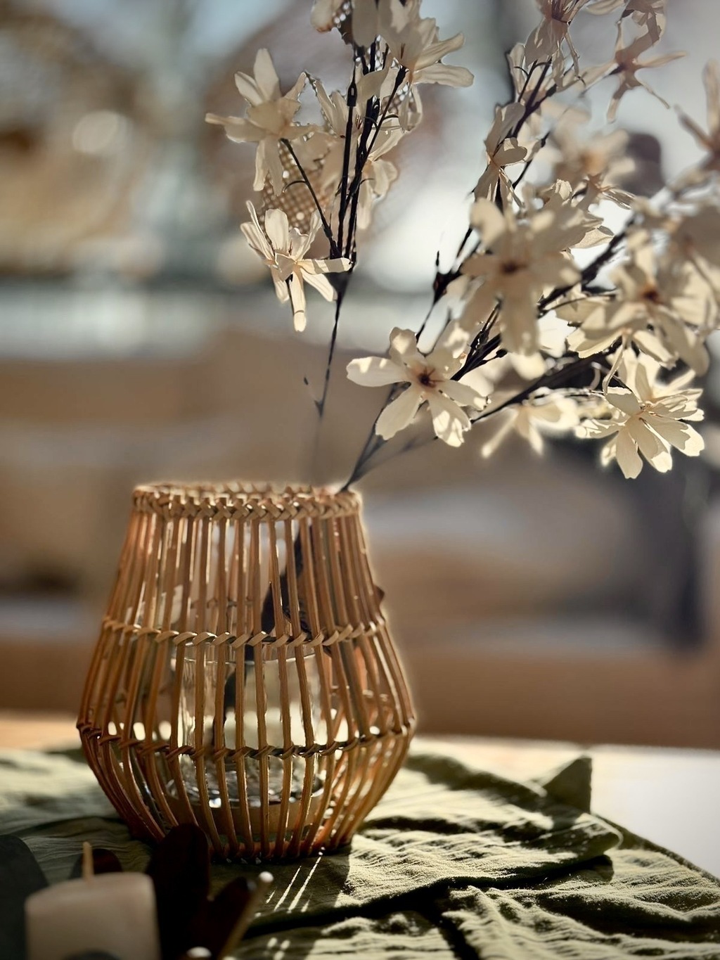 Este elegante ramito de azahar blanco de 35 cm es perfecto para decorar paredes, espejos, o embellecer tu hogar en floreros y canastos de fibras naturales. Su versatilidad y delicadeza lo convierten en un accesorio imprescindible para cualquier ambiente. No lo expongas al sol directo para preservar su encanto y frescura.