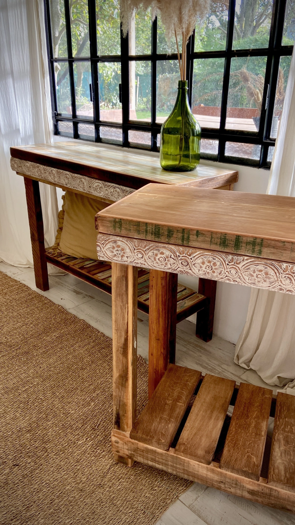 Al ser de madera antigua recuperada cada producto es único, por lo que puede variar tanto la tonalidad de la madera como el color del decapado oel tamaño de las varillas. Consultar modelo disponible antes de comprar