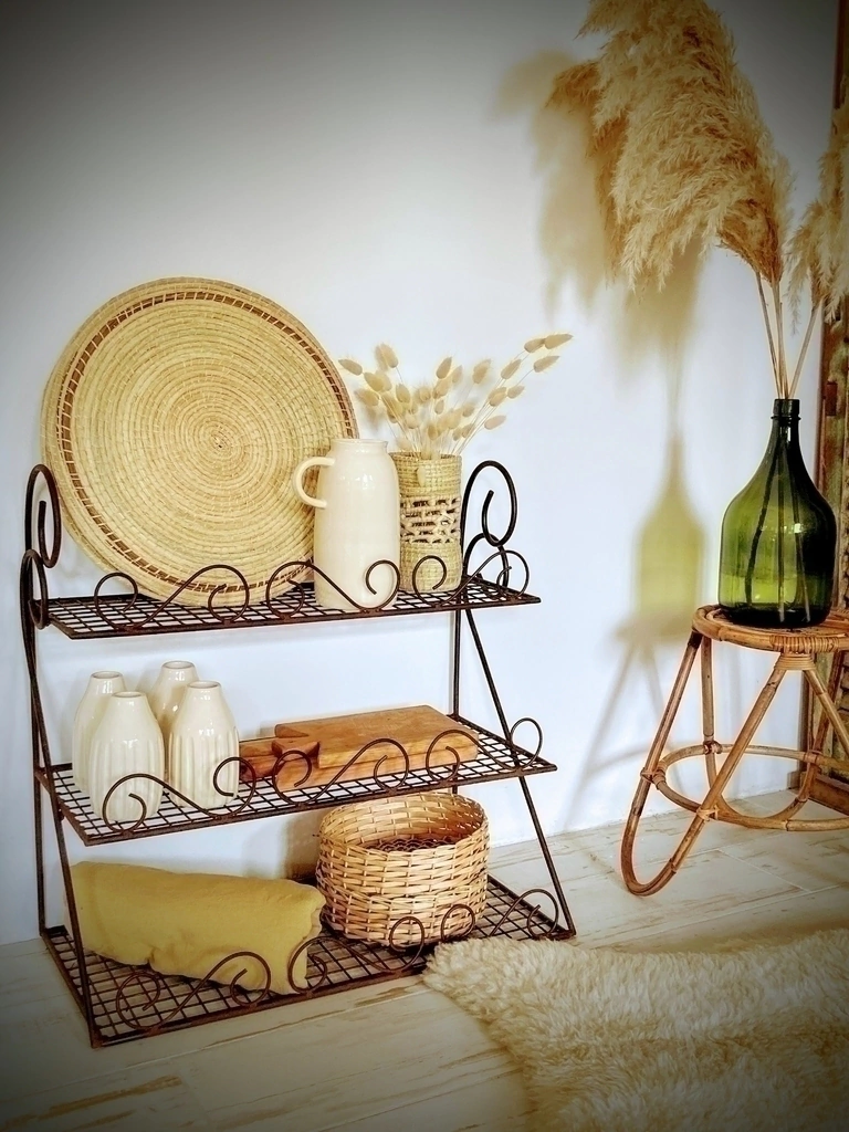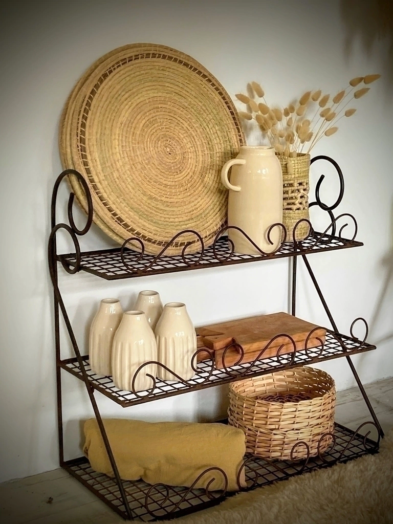 Dale un toque elegante y funcional a tus espacios con la repisa de hierro oxido. Diseñada con tres estantes, es perfecta para exhibir tus objetos favoritos o mantener el orden en cualquier ambiente. Su medida chica de 60x60x30 cm se adapta a cualquier rincón, ofreciendo versatilidad y estilo.