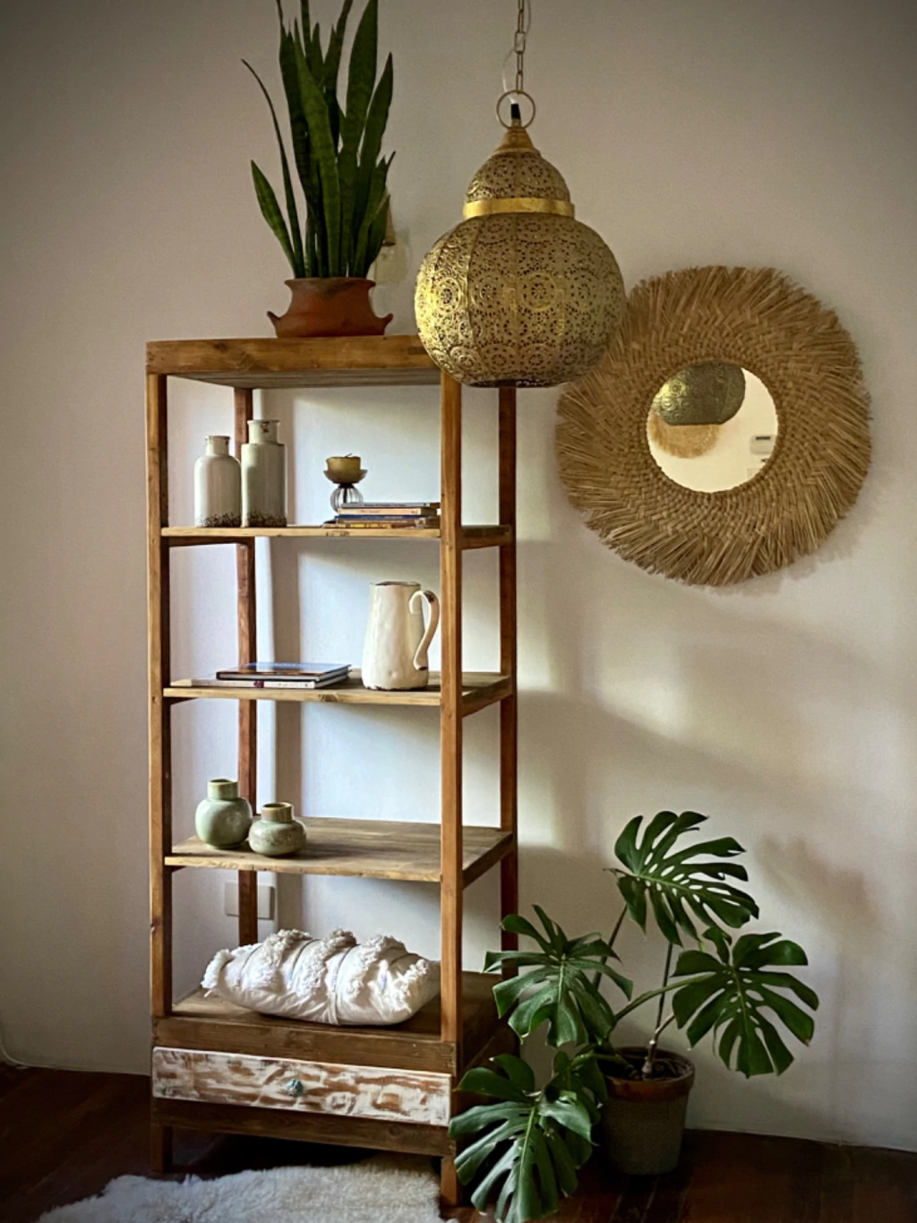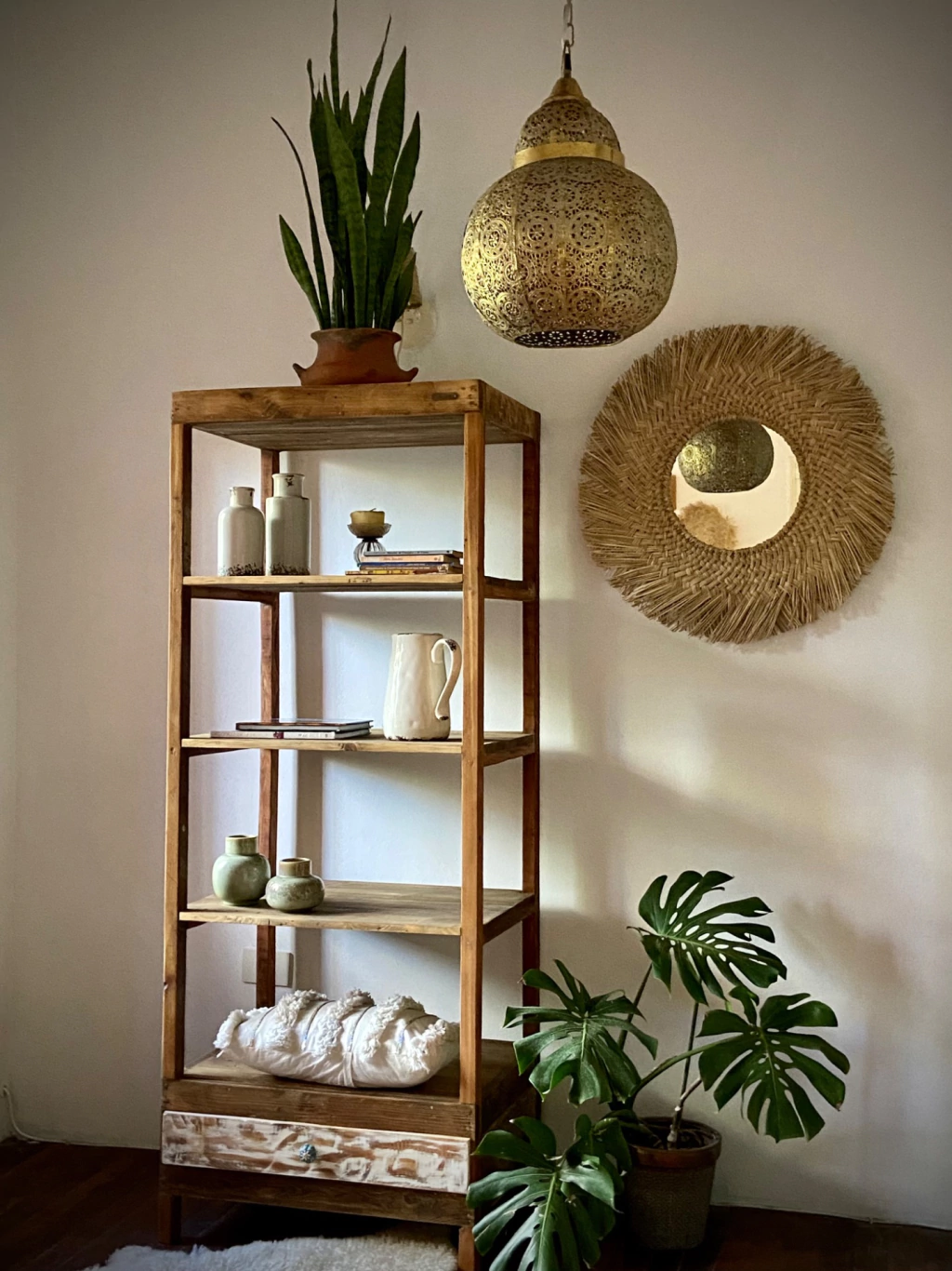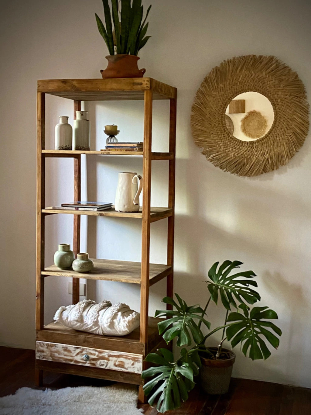 Repisa de madera antigua de demolición, madera recuperada, teñida.