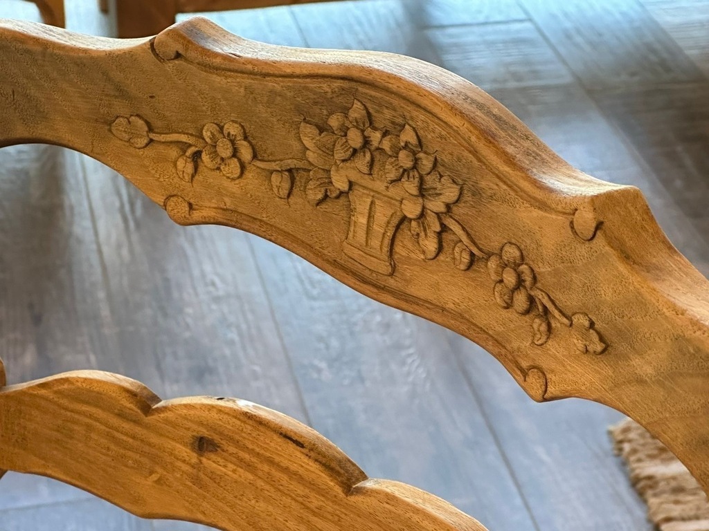 Descubrí este exclusivo set de 4 sillas de madera antigua recuperada, meticulosamente restauradas para realzar su belleza natural y autenticidad. Cada pieza irradia el encanto del estilo provenzal, aportando calidez y personalidad a tu espacio. Ideales para combinar con nuestra Mesa Florence, son únicas e irrepetibles. ¡Sumá historia y elegancia a tu hogar con este set artesanal!