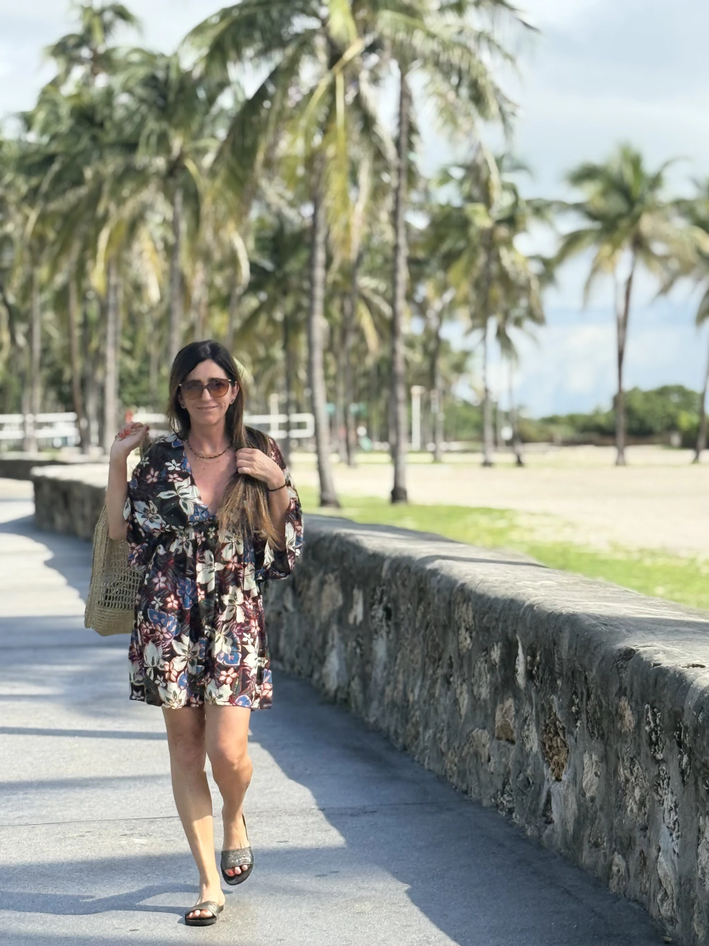 Vestido corto de algodón estampado de mangas amplias y elástico de ajuste en cintura. Tanto el escote delantero como el de esalda, llegan a la altura de la cintura.